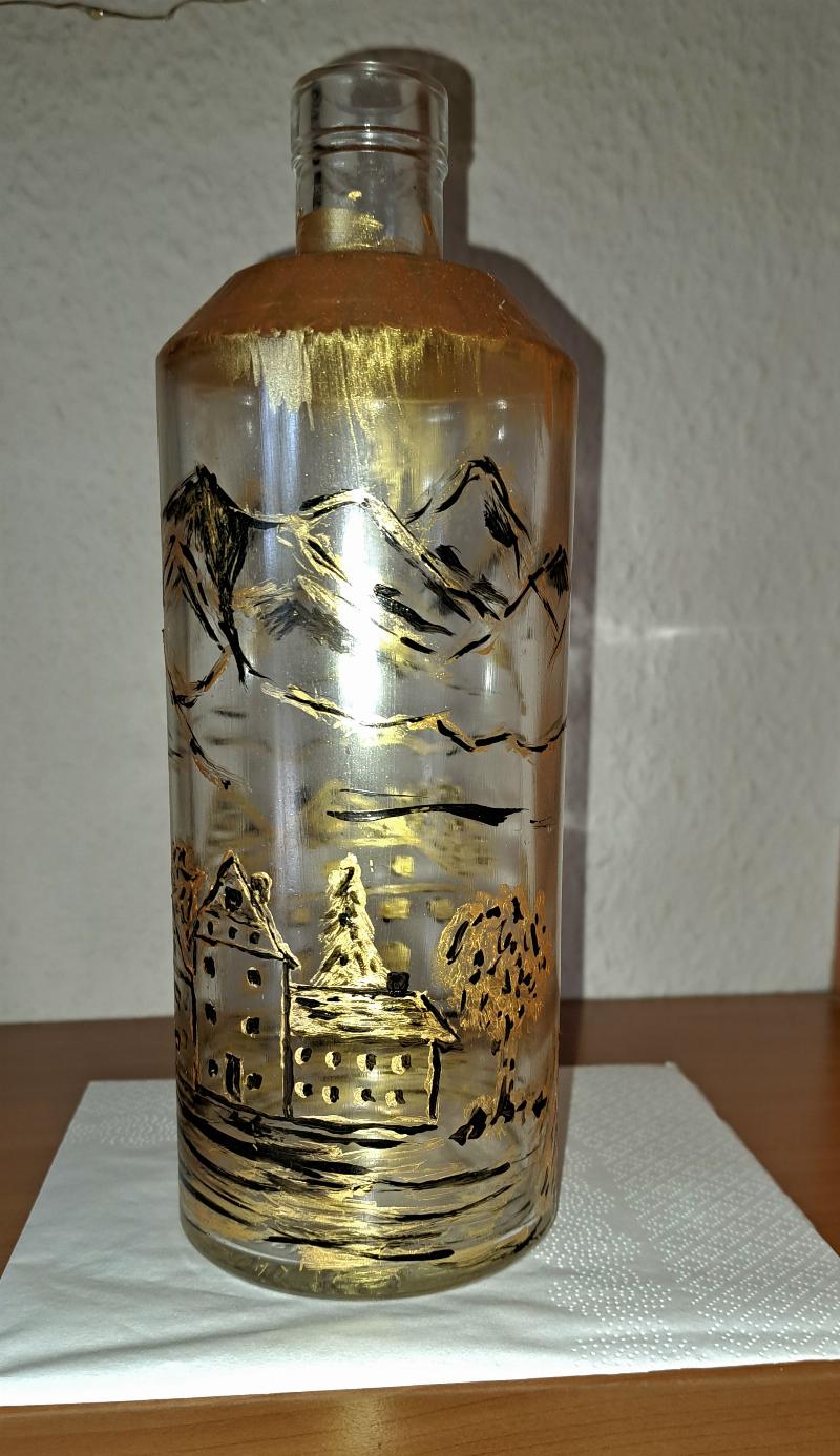 An zwei Nachmittagen werden Flaschen dekorativ mit Acryl bemalt!