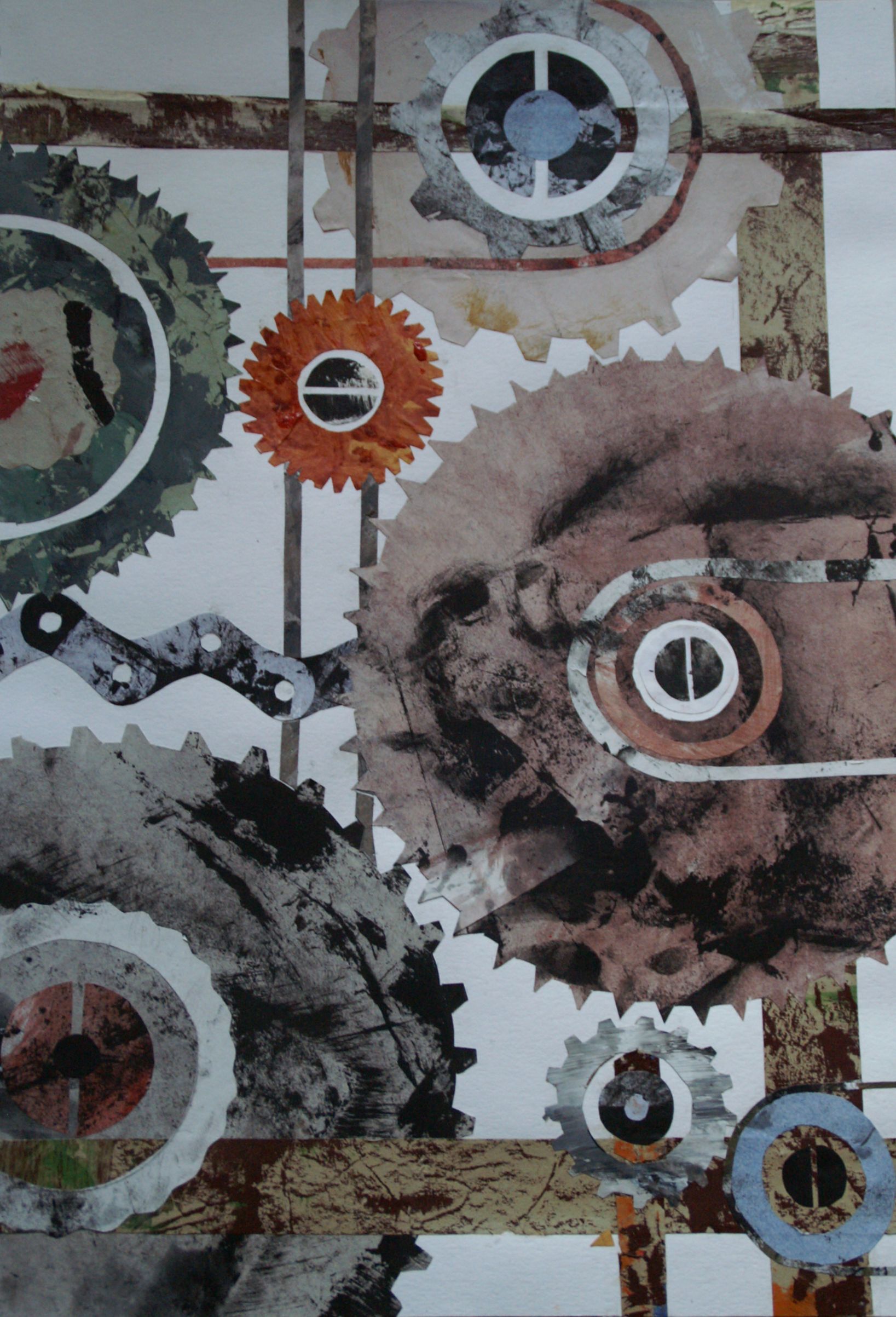 Neben der Malerei sind Papiere aller Art, vorzugsweise mit Gebrauchsspuren, die Grundlage und der Ausgangspunkt für ihre Arbeiten. Einige der Papiere sind als Abfall bei Druckprozessen entstanden, andere werden von der Künstlerin selbst als Material gestaltet. Vielfach liegt ein Papier längere Zeit als Unterlage auf dem Arbeitstisch, bis die Spuren darauf so interessant geworden sind, dass sie als Collageelement in ein neues Bild wandern. Kein Schnipsel ist zu klein, um nicht wieder in einem Bild "aufgewertet" zu werden.
