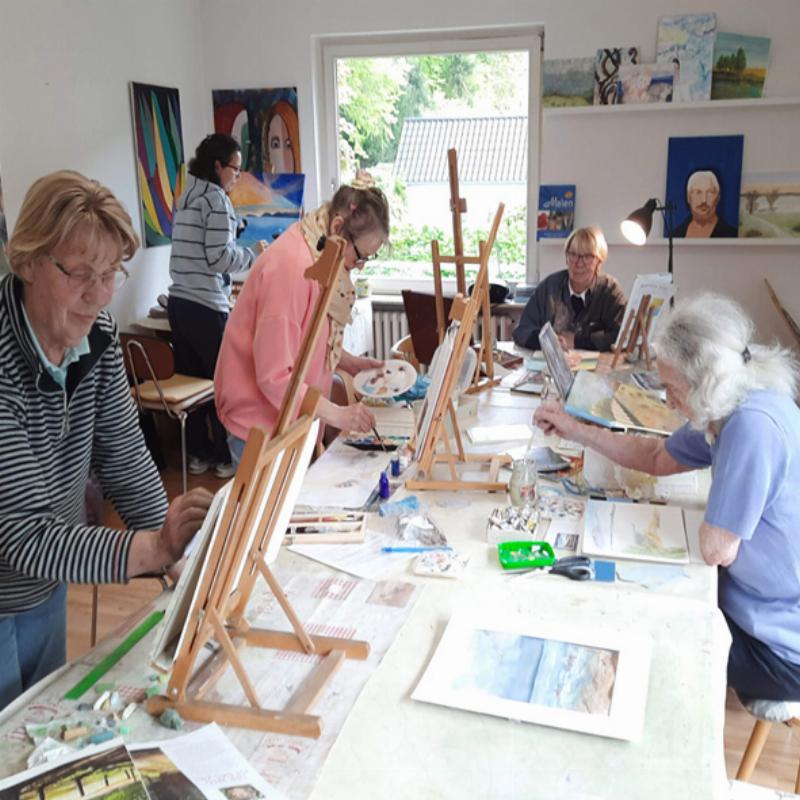 Die Künstler*innen laden zur Besichtigung ihrer Aquarelle, Acryl-, Öl-, Gouache- und Pastellkreidebilder ein. Die Besucher*innen dürfen selbst kreativ werden und kostenfrei munter drauf los experimentieren und gestalten. Heißgetränke und Kuchen runden das Erlebnis ab.
