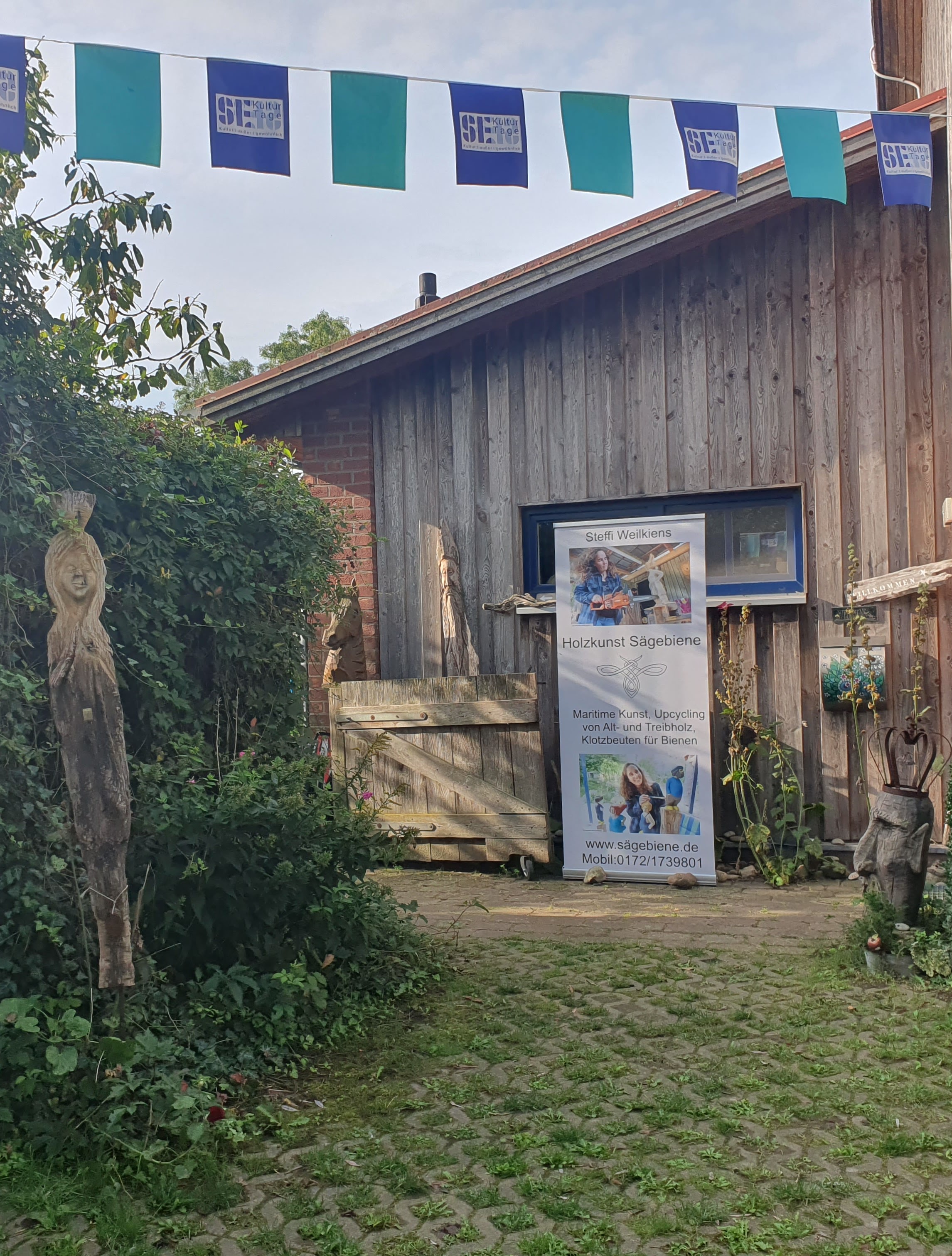 Die Holzkunstwerkstatt und Galerie Sägebiene befindet sich in der Hauptstraße 1a in 23826 Fredesdorf. Eintritt frei, Parkplätze befinden sich am Dorfplatz