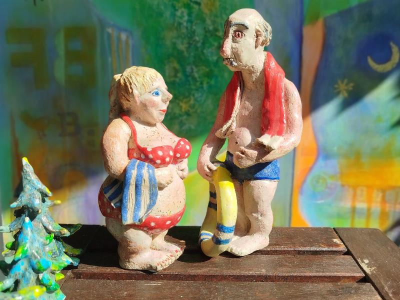 Die Tonfiguren Gerda und Klaus führen Sie in einer Slideshow durch meine Bilder. Mit norddeutschem Witz und einem Augenzwinkern kommentieren sie Details und zeigen, wie viel Lebensfreude im kreativen Tun stecken kann.