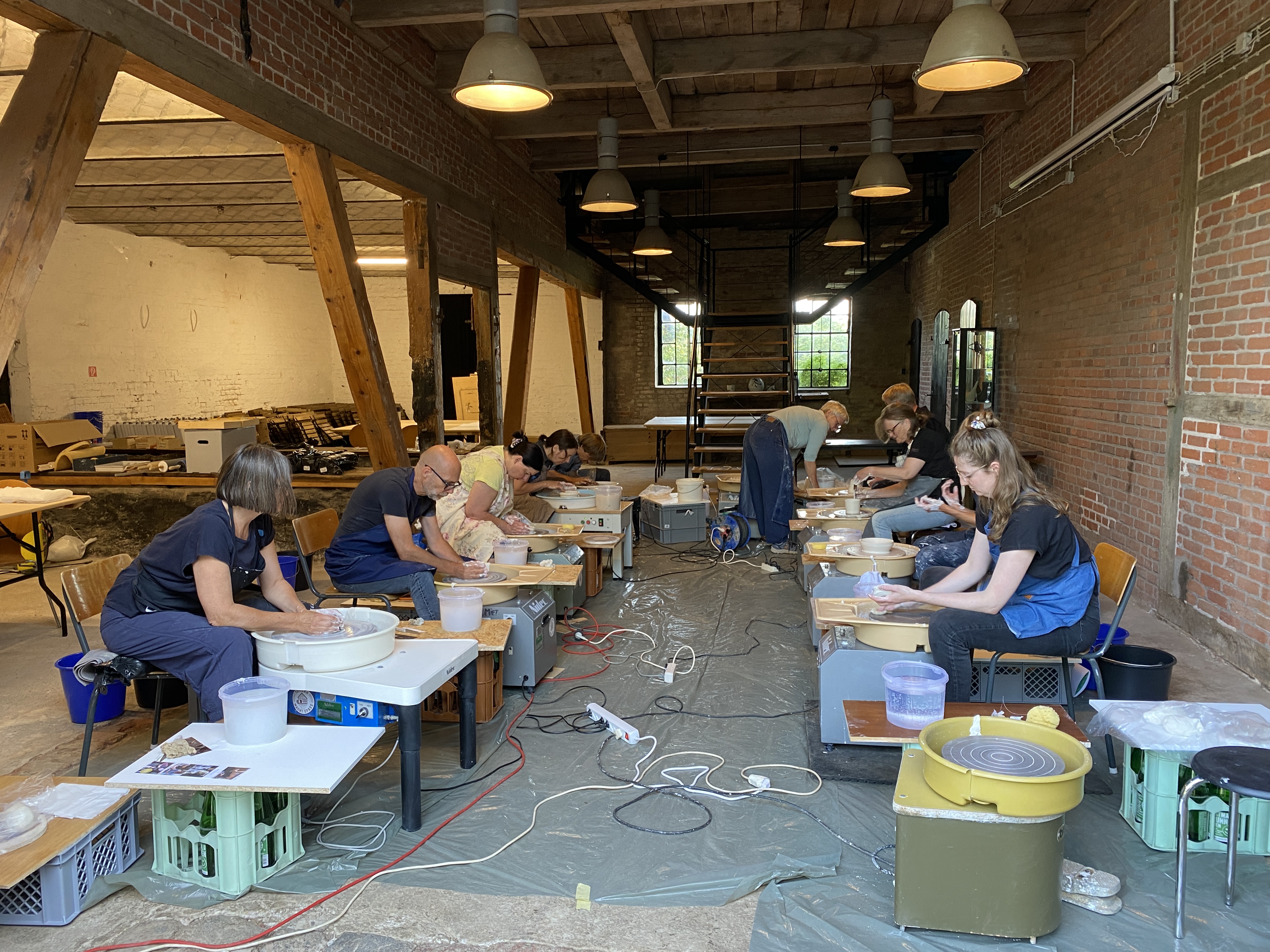 Auf dem Werkgut bieten wir gemeinsam mit unterschiedlichen Künstler:innen Tages- und Wochenendworkshops zu verschiedenen künstlerischen und handwerklichen Techniken wie Holzbildhauen, Porzellan- und Steinzeugdrehen, Weben, Bildhauerei und Druckkunst an. Während der Workshops wohnen die Teilnehmenden in unseren skandinavisch eingerichteten Gästezimmern und werden voll verpflegt. Außerhalb der Workshops stehen die Ferienwohnungen zur Vermietung frei. In unserer großen Diele können außerdem Hochzeiten gefeiert oder Konzerte, Lesungen und Theater veranstaltet werden. Unser Aterlierhaus mit dem großen Atelierraum kann für Seminare, kleine Netzwerkveranstaltungen oder zum kreativen Arbeiten genutzt werden.