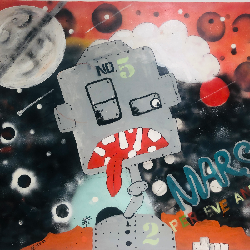 Freche und lustige Bilder von Arne Ewers im Stil der Streetart und des Comics. Farbenfrohe Collagen und Bilder in Acryl von Monika Franz.