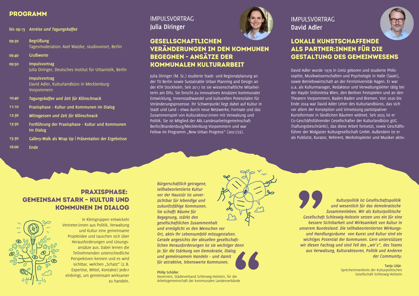 Auf unserem Fachtag am 25. September in der JugendAkademie Bad Segeberg bringen wir Kulturakteur*innen und kommunale Gestalter*innen und Entscheider*innen aus Politik und Verwaltung zusammen, um:
