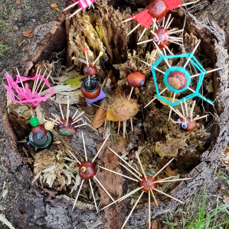 Gemeinsam den Wald entdecken, Vogelstimmen lauschen, Insekten mit der Becherlupe beobachten und Natur-Schätze sammeln. Daraus entstehen kreative Kunstwerke wie Mandalas, Traumfänger und schöne Erinnerungen.