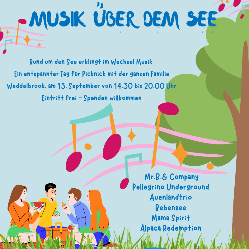 Erleben Sie Live-Musik über dem See – von Jazz und Pop bis Folk und Gospel. Bringen Sie Ihr Picknick, Decken und Stühle mit und genießen Sie einen entspannten Tag im Freien mit abwechslungsreicher musikalischer Unterhaltung!