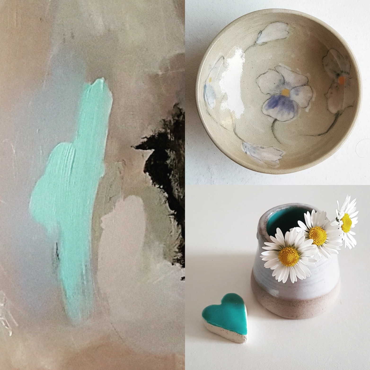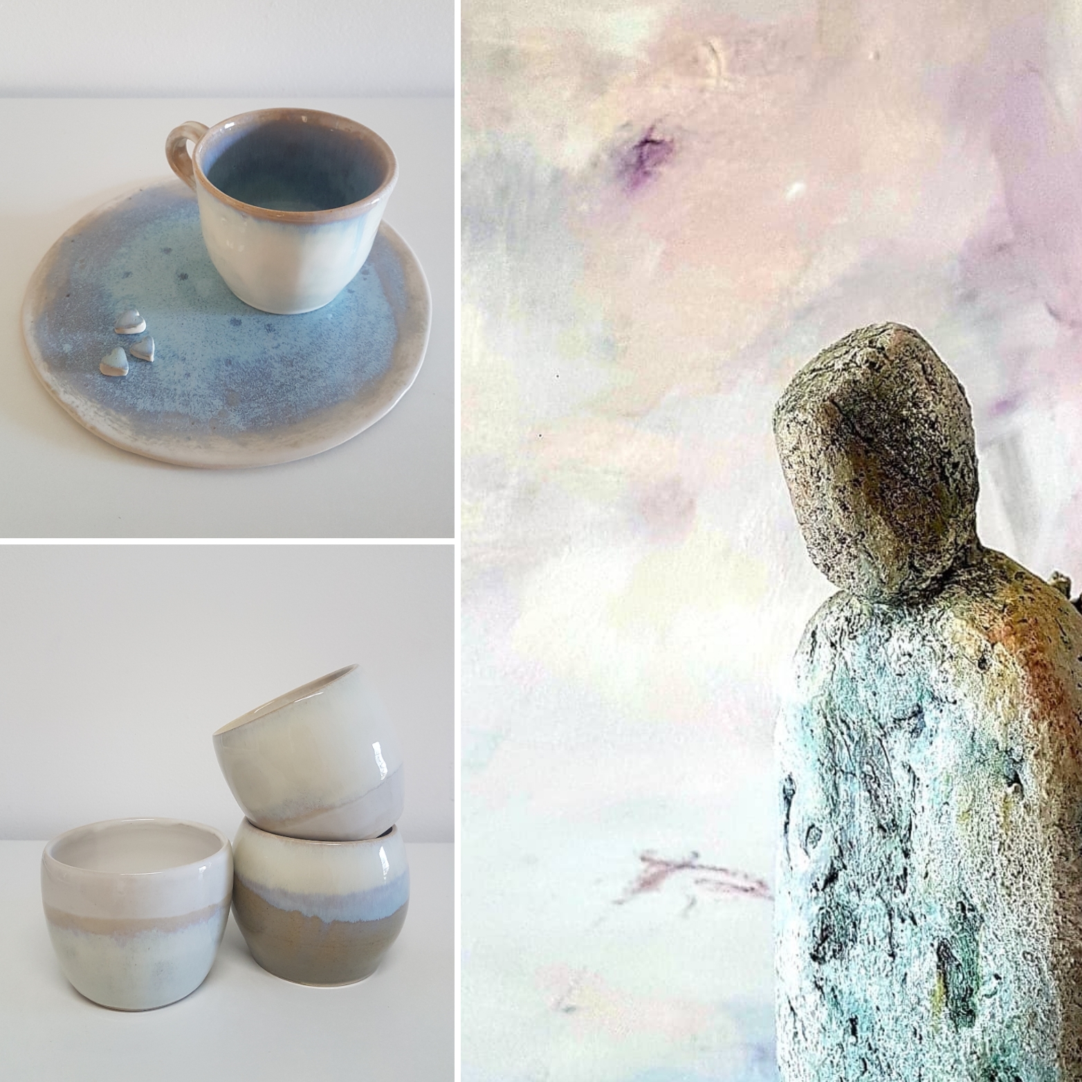 Meine Skulpturen, Gefäße und Gebrauchskeramiken entstehen parallel zur Malerei, passend glasiert oder handbemalt ergeben sie eine Einheit und ergänzen sich mit ihr.