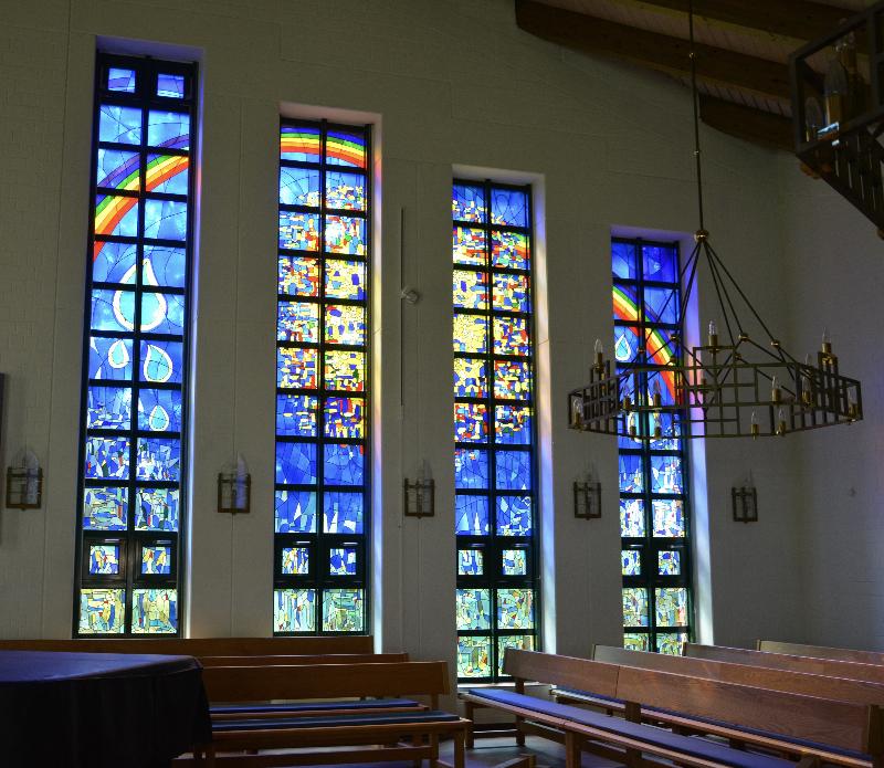 Für die Auferstehungskirche in Nahe hat Uwe Fossemer im Laufe von zwölf Jahren eine umfangreiche farbige Verglasung des Kirchenraums entworfen und verwirklicht.