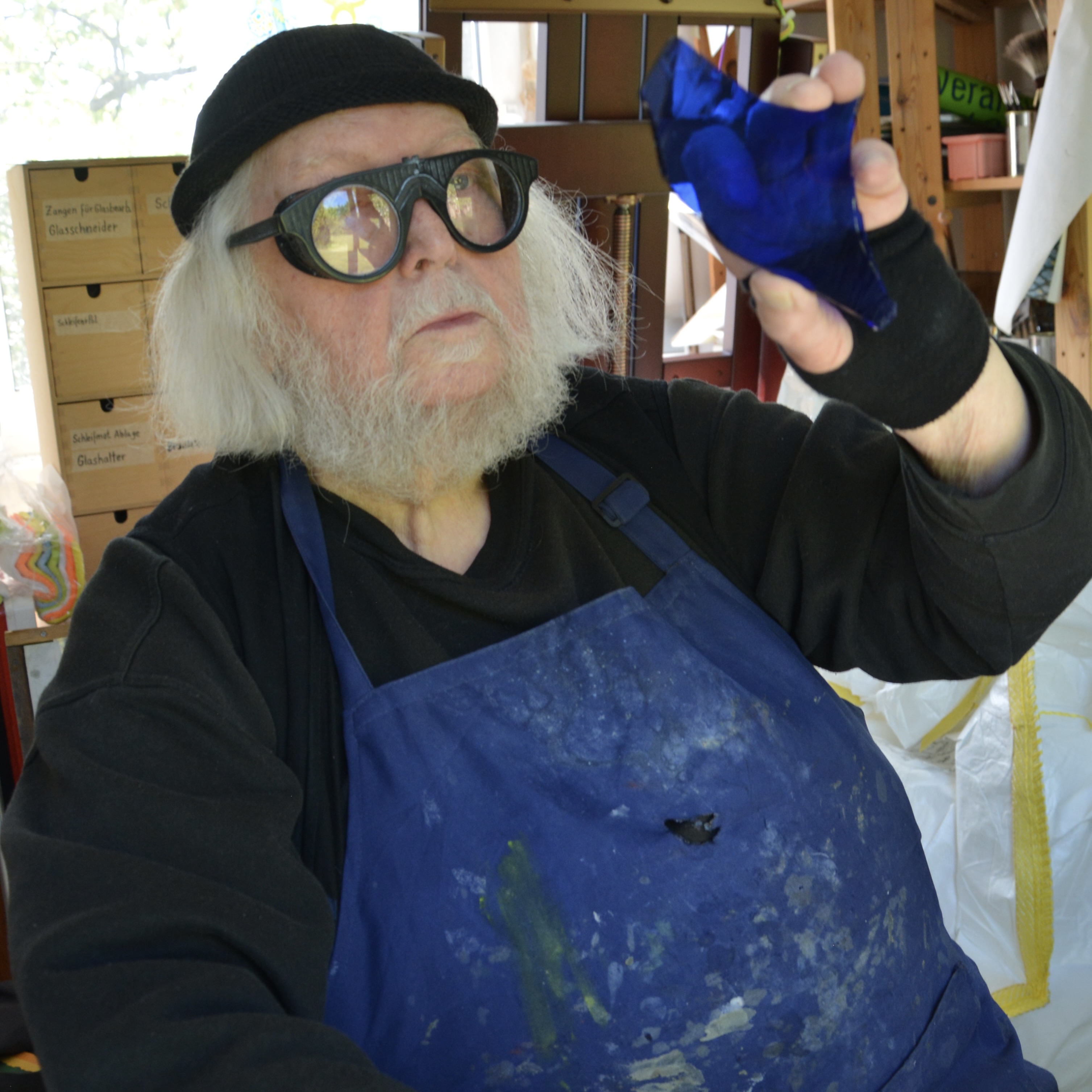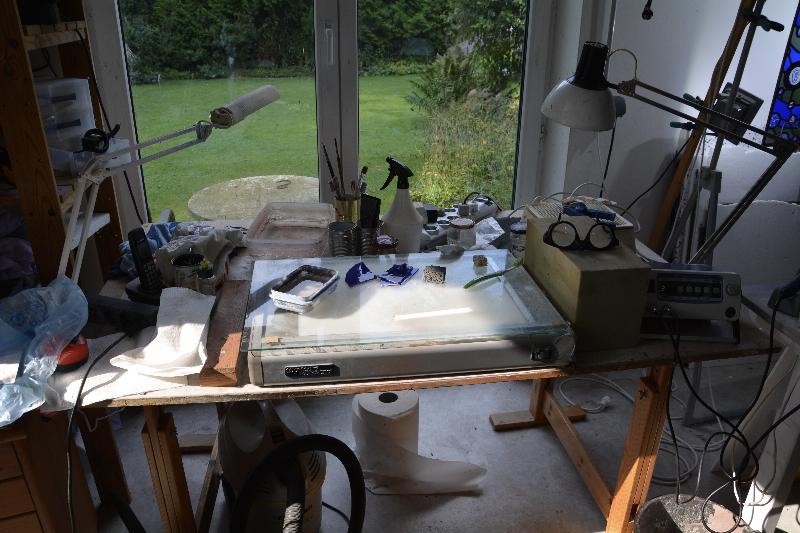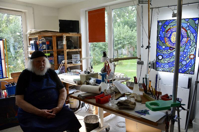 Im Werkstattgespräch demonstriert und führt er seine Arbeitsweise vor. Beispiele fertiger Arbeiten können betrachtet werden.