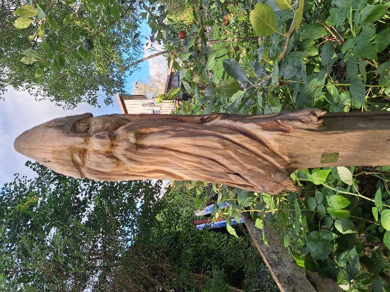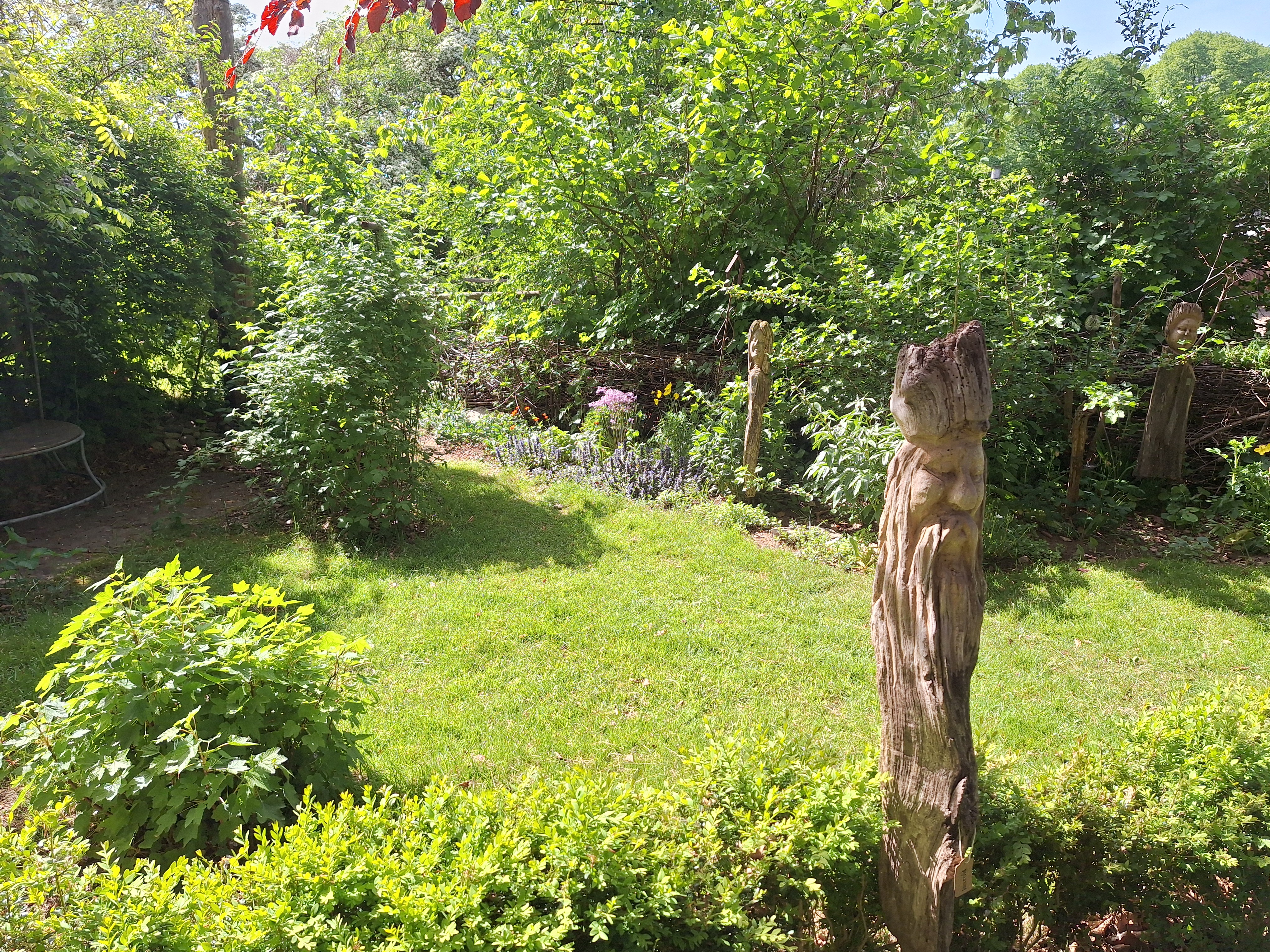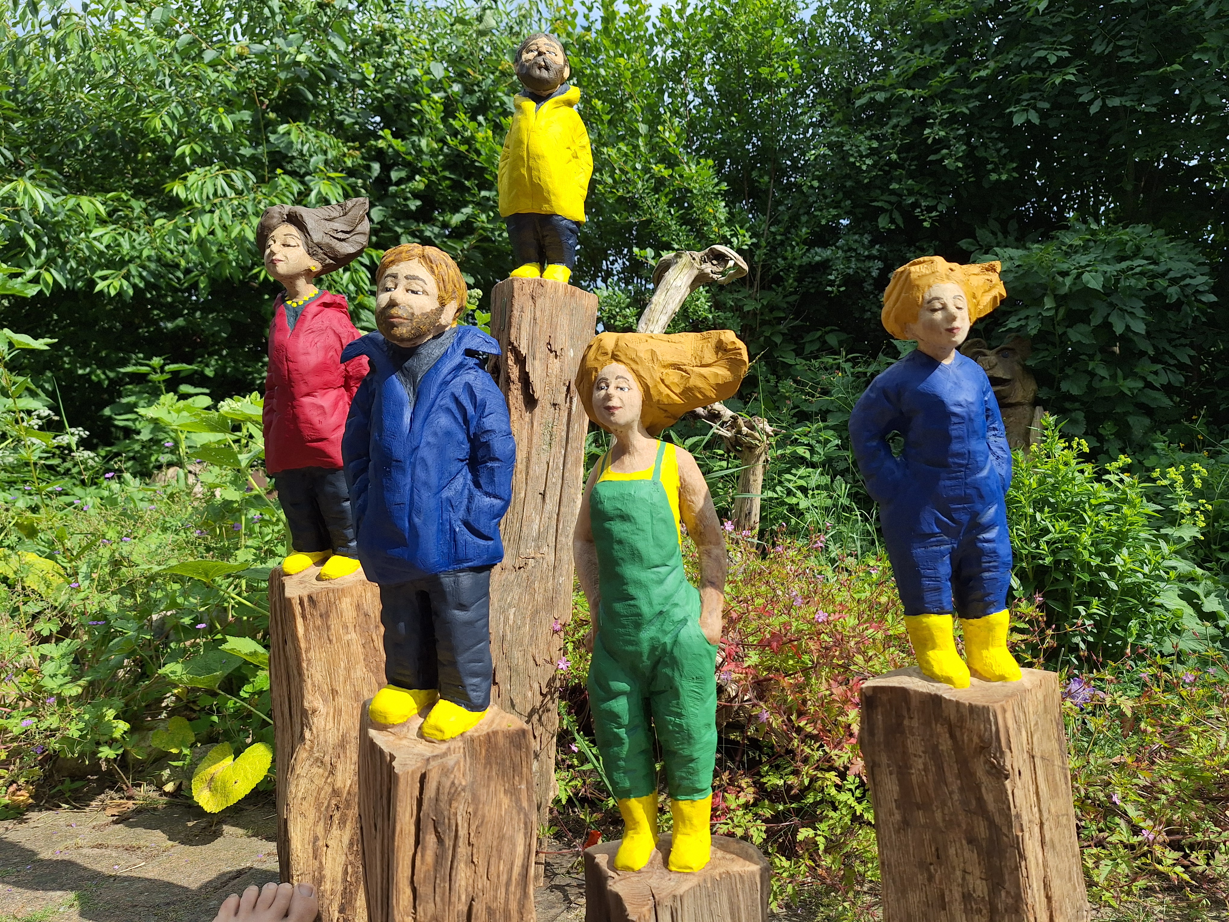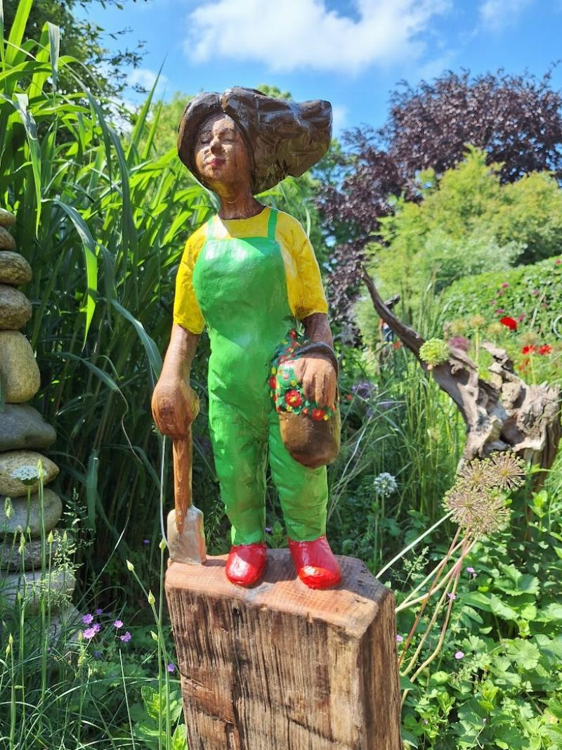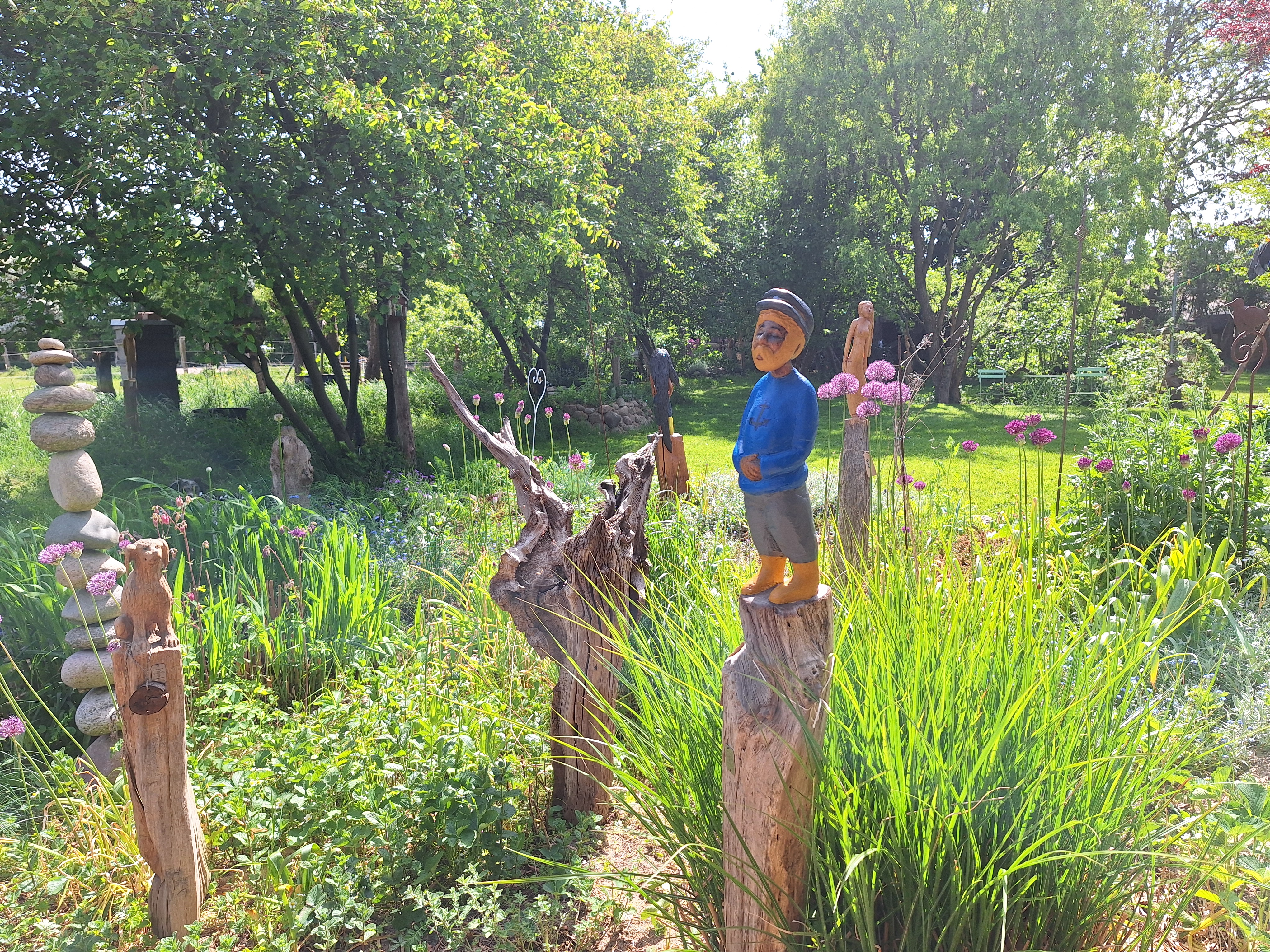 Jeweils um 15 Uhr findet eine Schnitzvorführung mit der Kettensäge statt, bei der Interessierte Steffi Weilkiens über die Schulter schauen und die Entstehung eines Holzkunstwerkes live erleben können. Im weitläufigen Skulpturengarten laden Musik und Kaffee & Kuchen zum Verweilen ein.