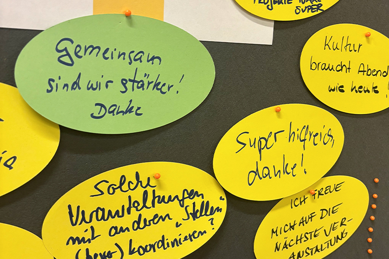 Als Teil des landesweiten Kulturknotenpunkt-Netzwerks stehen wir im direkten Austausch auf Landesebene. Wichtige Informationen und Entwicklungen werden über Verteiler, Gespräche und weitere Kanäle an die Kulturakteur*innen der Region weitergegeben.