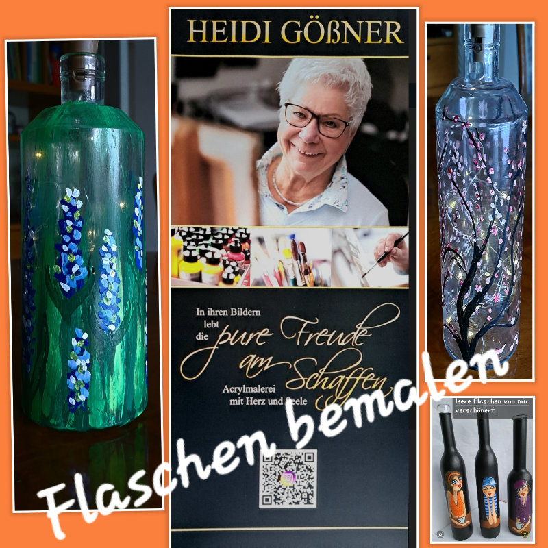 Flaschen dekorativ bemalen für Garten, Terrasse oder Wohnzimmer. Motive je nach Lust und Laune, einfach ausprobieren. Und wenn die Flasche fertig ist, gibt es eine Lichterkette für die Flasche!