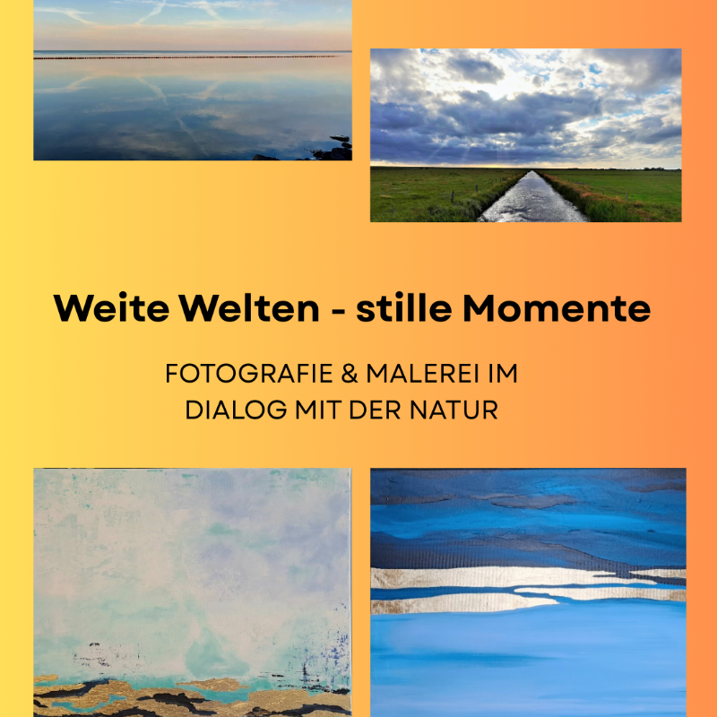„Weite Welten – stille Momente“ zeigt Natur in ihrer ganzen Ruhe und Größe. Malerei und Fotografie laden ein zum Innehalten, Staunen und Spüren – eine visuelle Reise durch Landschaften voller Tiefe, Licht und stiller Schönheit.